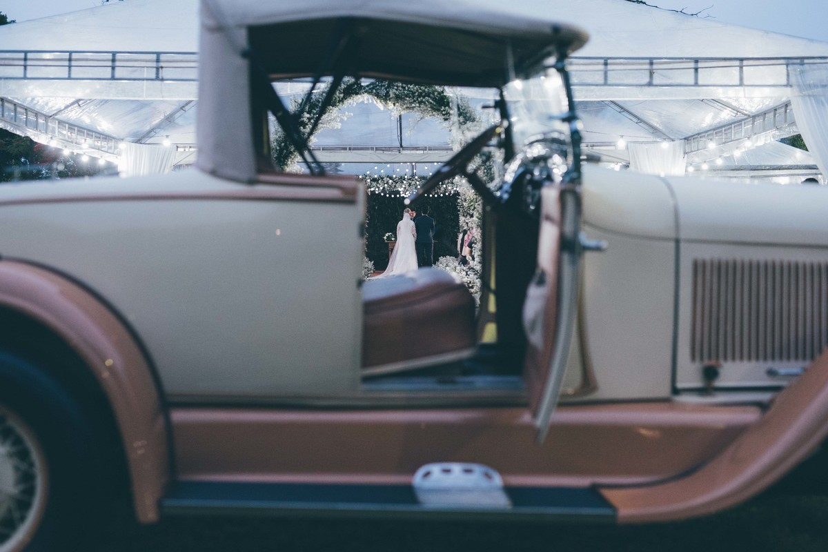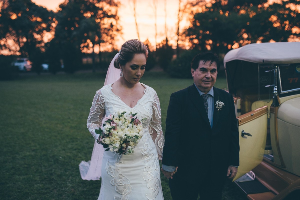 Foi uma semana onde a chuva não dava trégua e por ser um casamento no entardecer ao ar livre, vi que no dia do seu casamento mesmo com a chuva e uma tenda sendo montada no gramado, você Elo estava sempre calma com um sorriso no rosto.